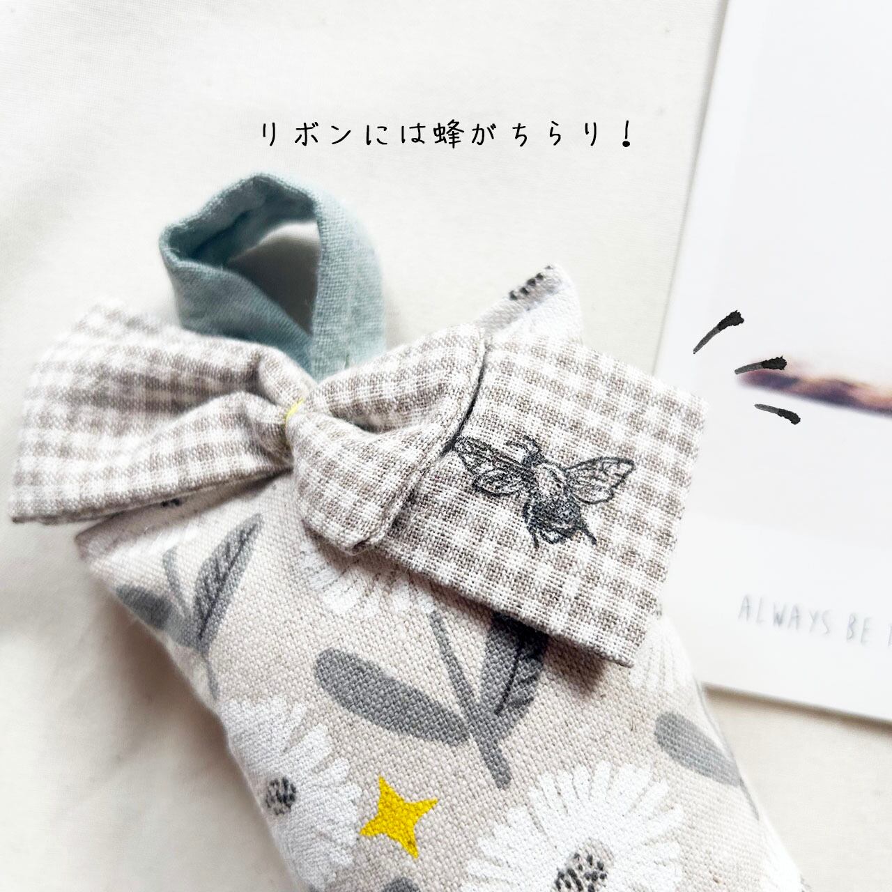 ワンポイントでつけたリボンは猫ちゃんが噛んでも破けにくいよう