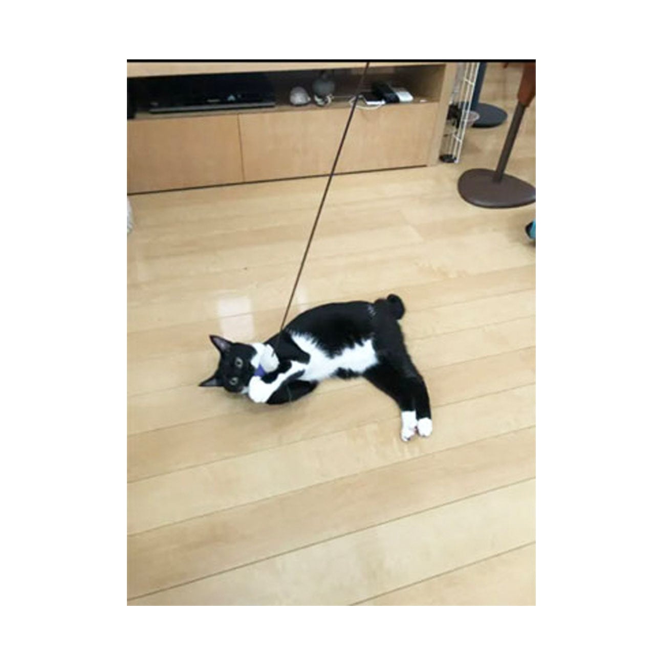ゴム紐の変則的な動きに猫もつい手を伸ばしてしまう